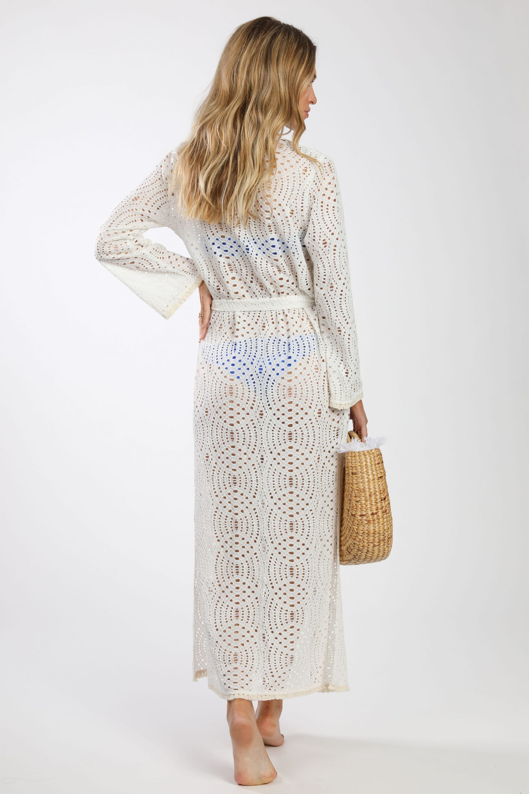 Positano Fringe Robe Ivory Lace – שמלת חוף לבנה – שמלת חוף ארוכה